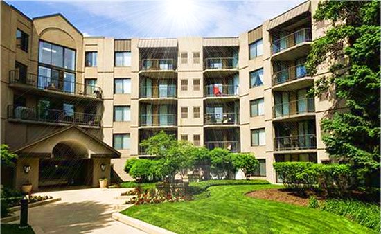 Condominium, internal driveway leading to the garages: